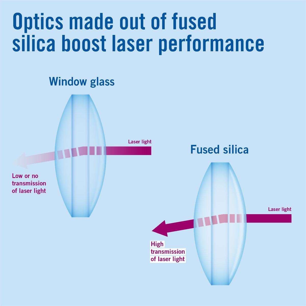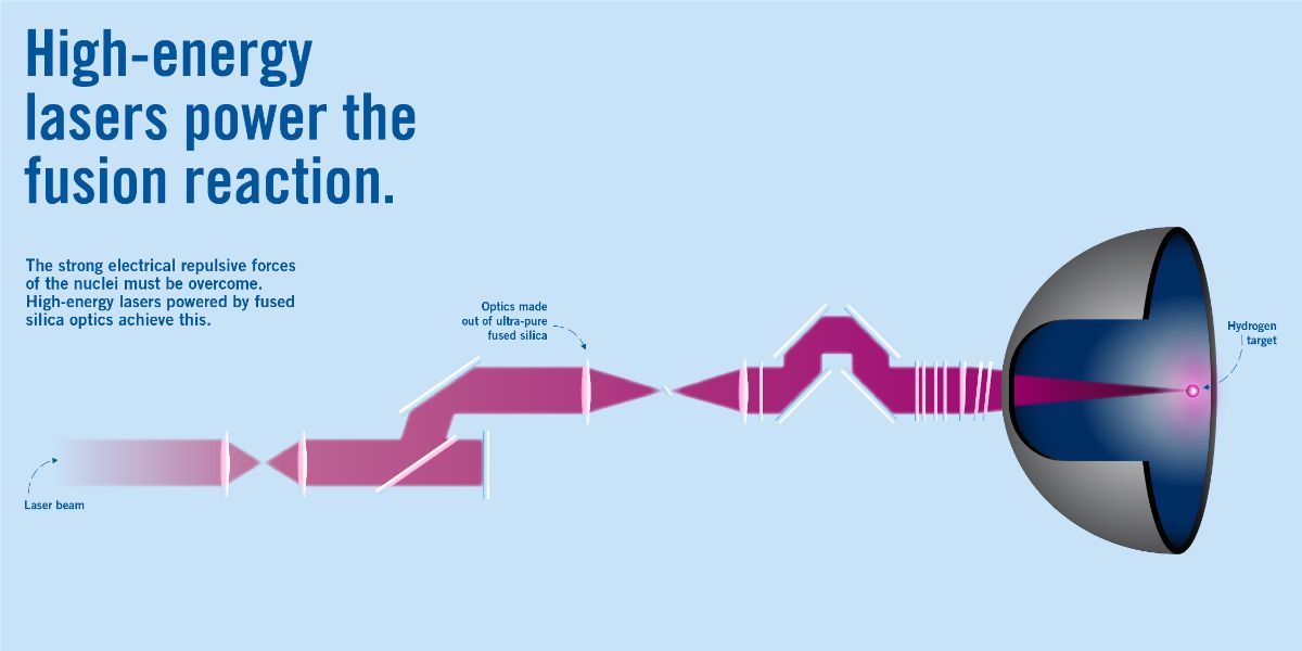 For laser fusion, high-precision optics in the 192 laser beams are crucial. The material has high purity and therefore offers excellent optical qualities. In addition, fused silica has the required high transmittance and low absorption in the ultraviolet light spectrum.