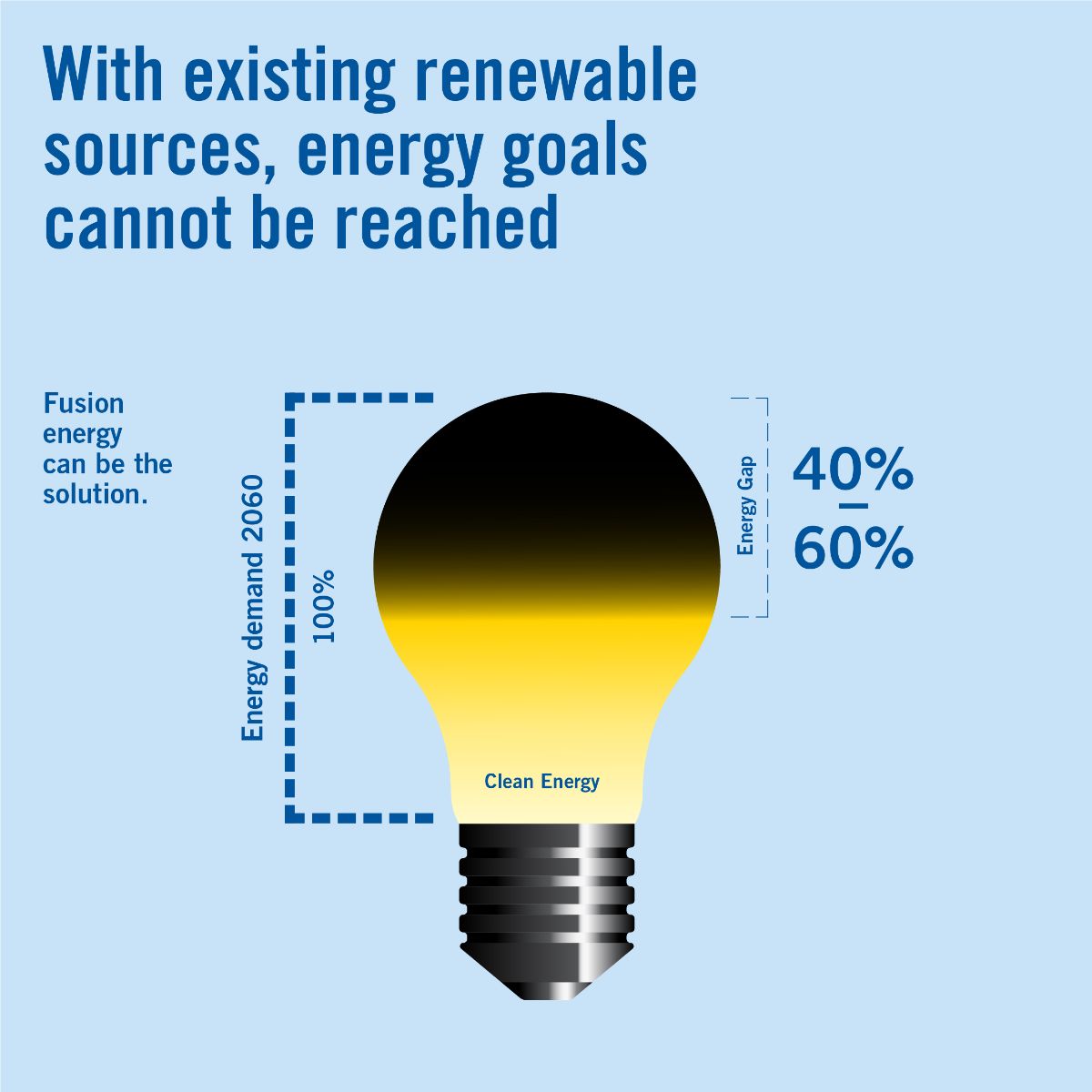 The World Energy Council (WEC) predicts that the electricity demand will increase by almost 150 percent by 2060 compared to 2015. At most, 40 to 60 percent of this will be covered by renewable energies. The remaining 40 to 60 percent would still require fossil fuels - an energy gap that must be closed: fusion energy could be the solution.